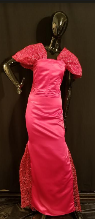 Loading... Please wait...Full length gown Cap Spider sequence sleeves.